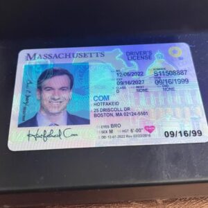 Scannable Massachusetts identification manufactured using rudimentary one-to-one ink, dotted and solid line microtext.