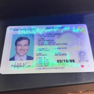 Scannable Nevada identification manufactured using frangible layers of composite (PC) polycarbonate and computer-generated biographical data.