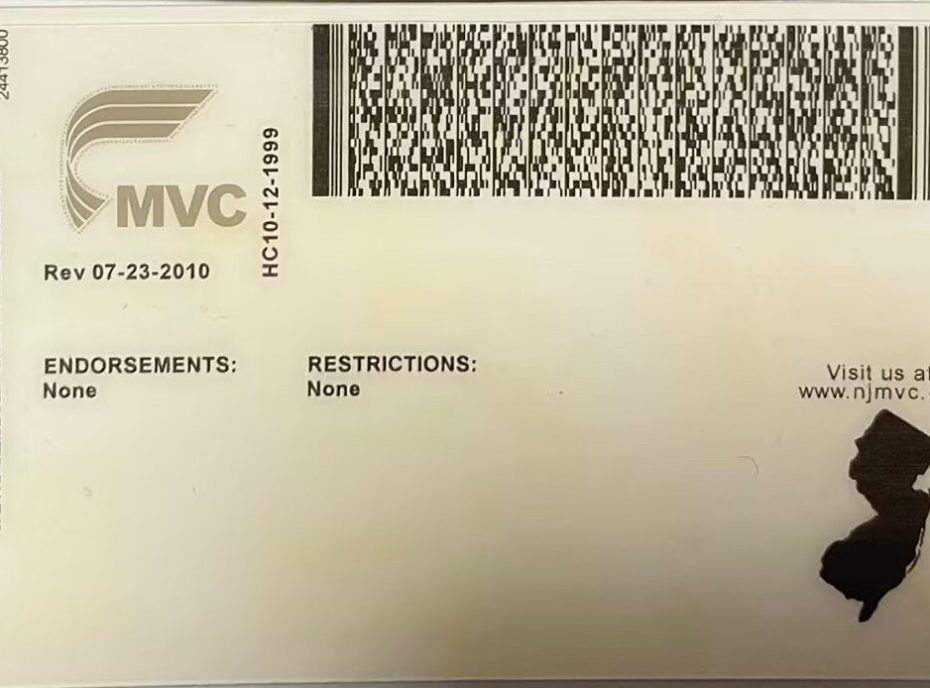 Scannable New Jersey identification comes with digitized serialization of identifier and several covert features with opacity mark printing.