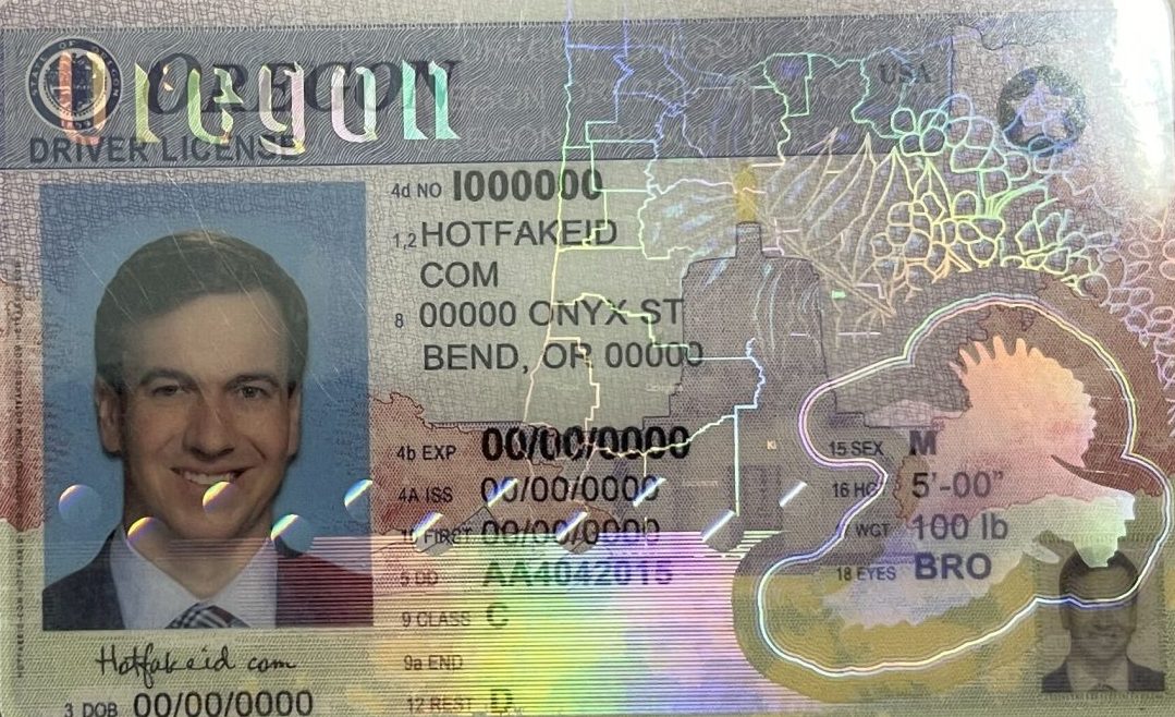 Scannable Oregon identification manufactured using high-contrast metallic inks and appropriate absorbency techniques.