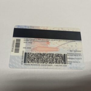 Scannable Texas identification is manufactured using contrasting colors, textured background and plethora of invisible security elements.